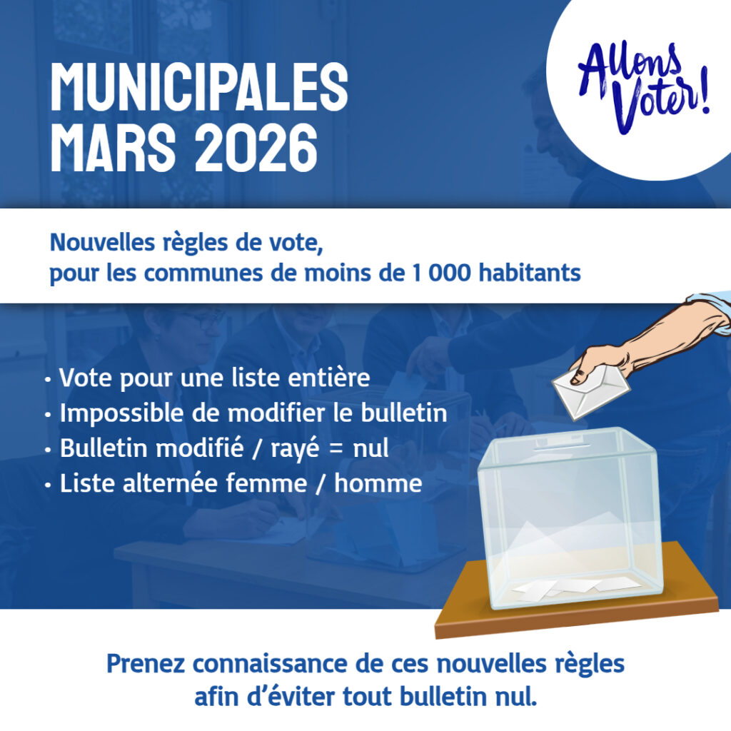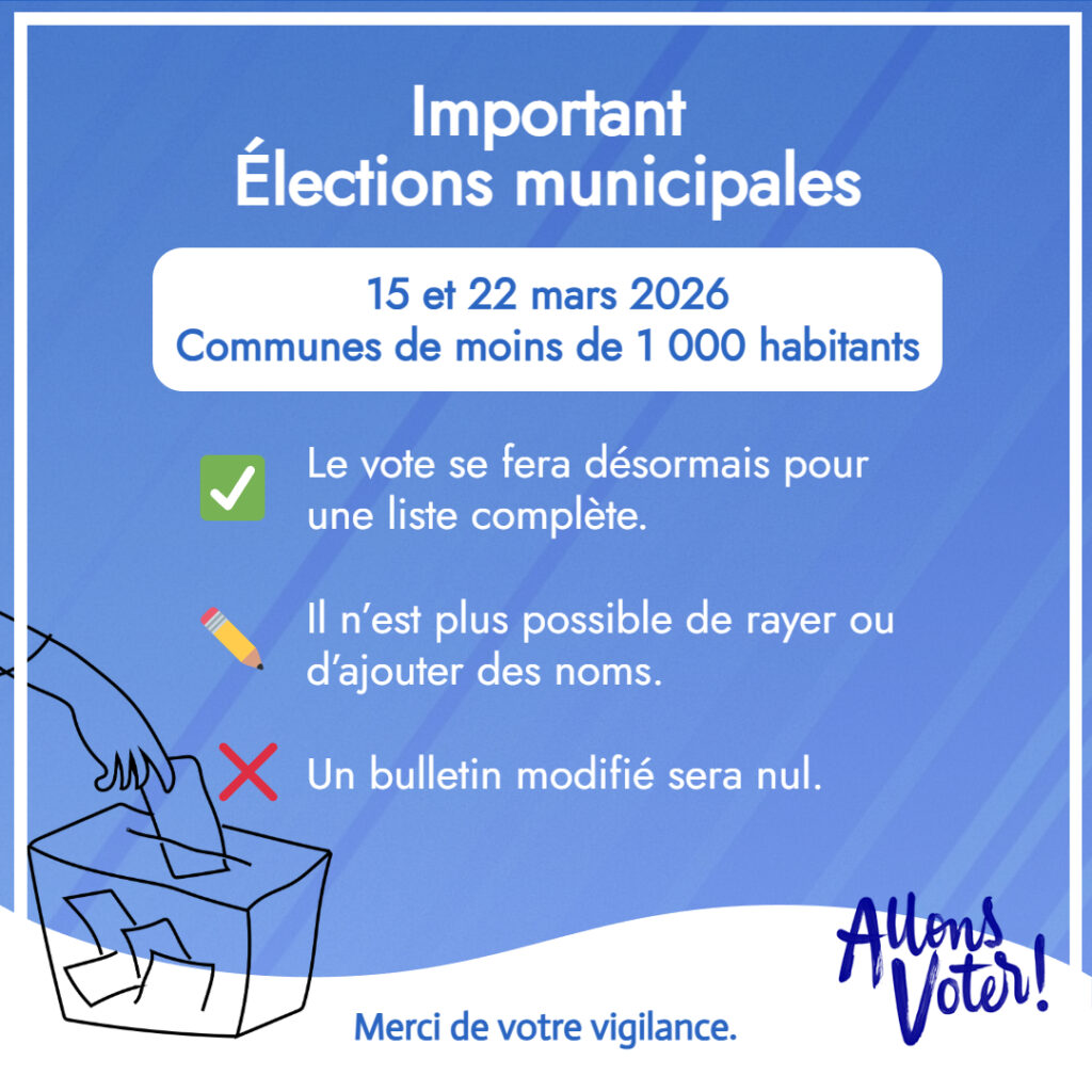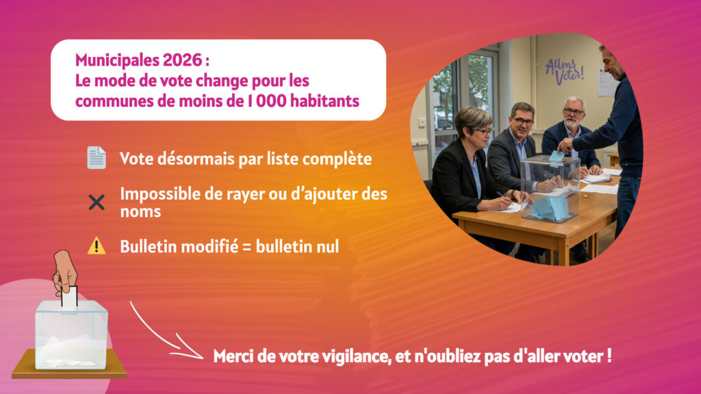 🗳️ À partir de mars 2026, dans les communes de moins de 1000 habitants, le vote se fera pour une liste entière.