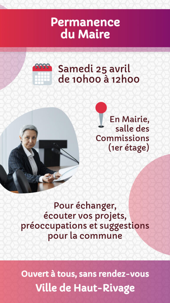 La permanence du Maire, c’est un moment où tout habitant peut venir rencontrer le Maire directement en mairie. Les administrés viennent pour des questions du quotidien : problème de voisinage, problème de circulation, une interrogation sur des travaux à venir, ou encore pour partager une idée.